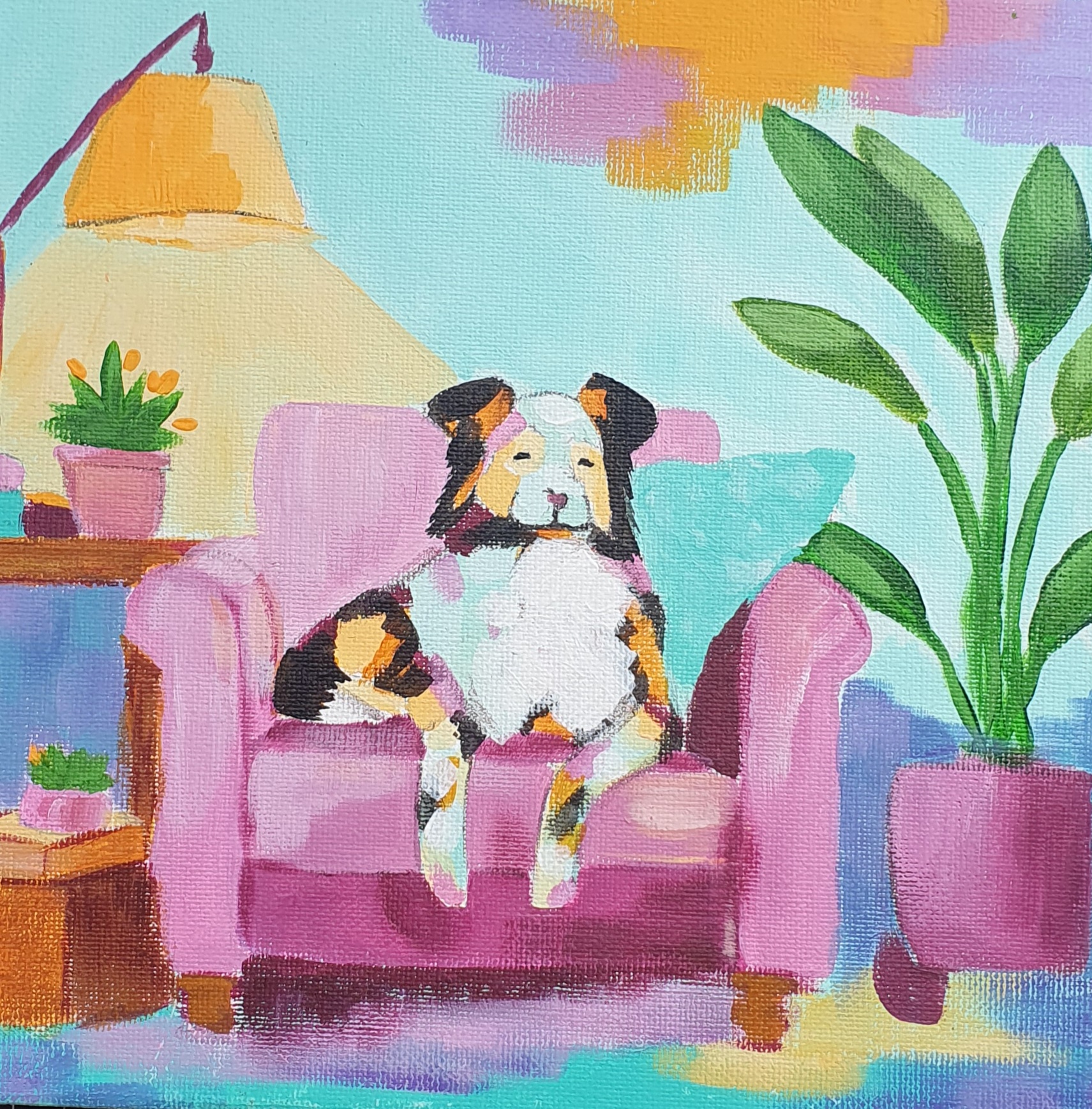 My practice is grounded in play, curiosity, and experimentation. I’m drawn to vibrant colour, expressive mark-making, and the joy of creating. I especially love painting animals and developing imaginative, emotionally driven works that invite connection and feeling.