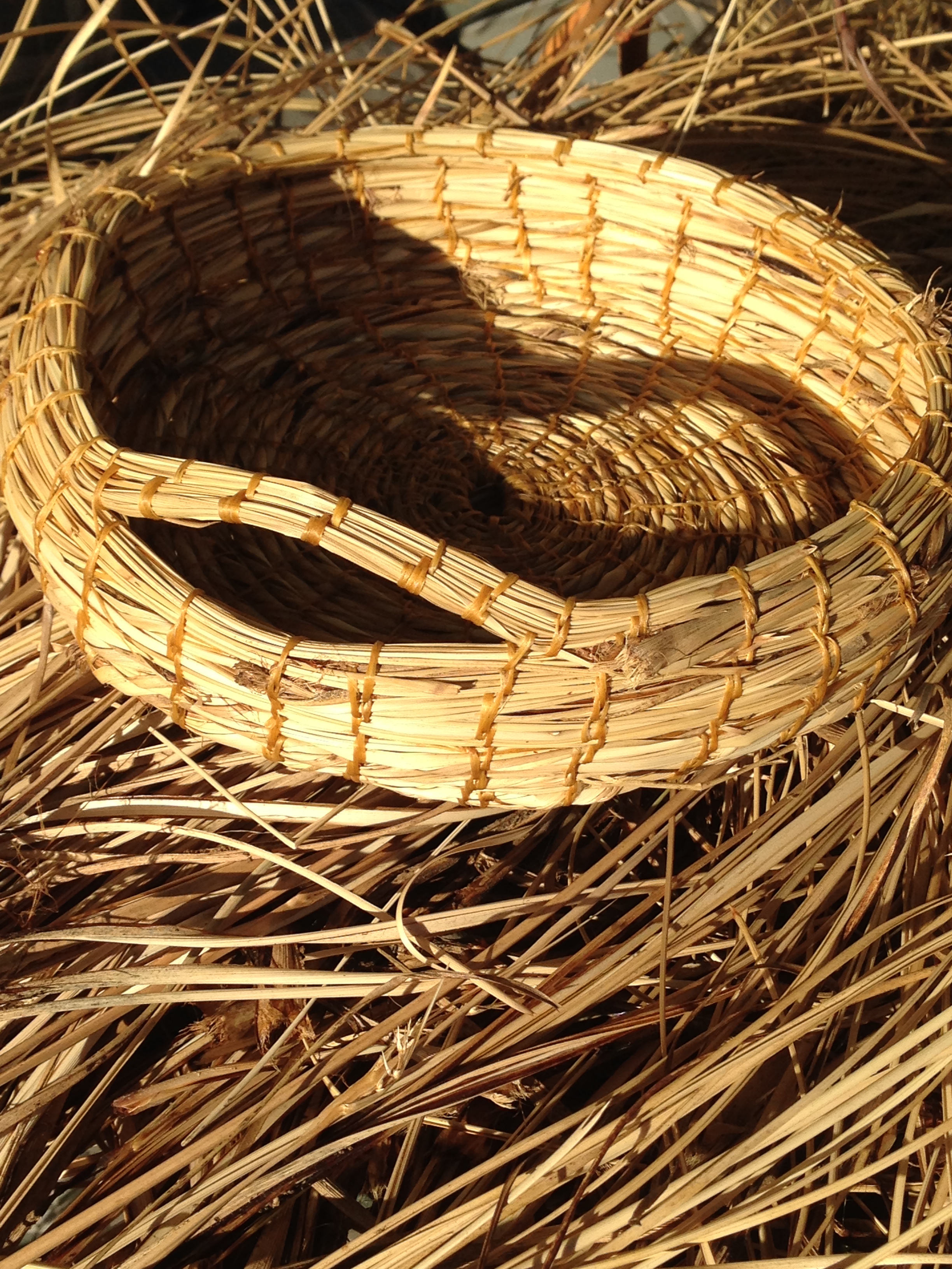 The rhythm of basketry is very therapeutic for me whether it is weaving, twining, coiling or stitching.