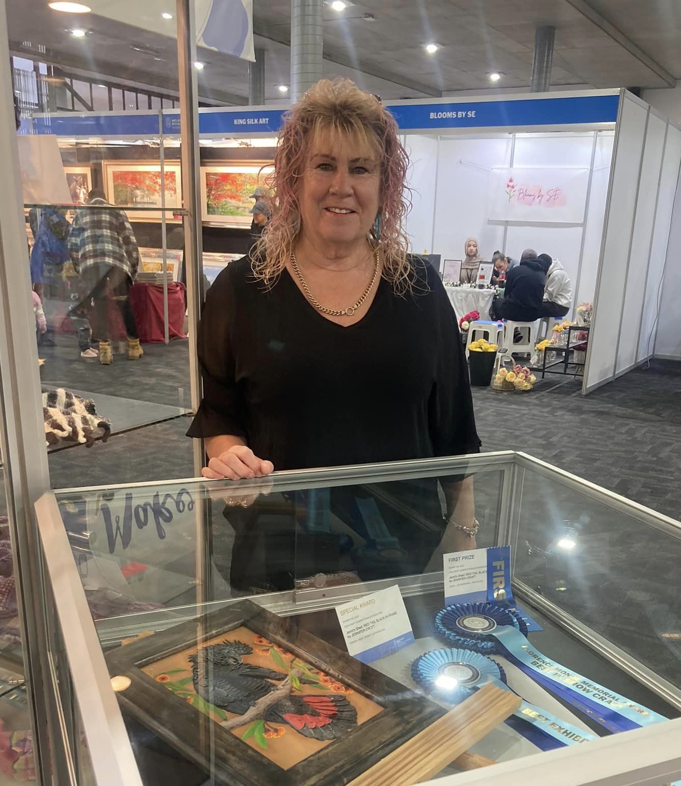 My work has been recognised throughout the world, with representative artwork now in collections in the United States, Europe and Australia. I recently gained my most prized accolade as the winner of the Florence Monod Memorial Award and Best in Show Craft at the 2024 Melbourne Royal Show for ‘Red Tail Black’ in frame.